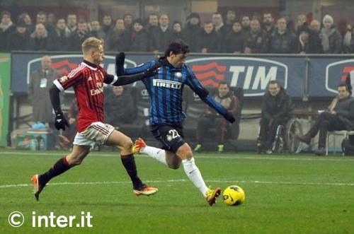 Nel derby del 15 gennaio, Ranieri si affida a un 4-4-2 con Thiago Motta nelle vesti di playmaker, Cambiasso a fargli da scudo, Zanetti sulla fascia destra e Alvarez a galleggiare tra la trequarti e la corsia mancina, con il compito di dare sostegno alla coppia d’attacco, formata da Milito e Pazzini; solito atteggiamento tattico, invece, per il tecnico rossonero Allegri, che schiera Emanuelson a ridosso del duo offensivo Pato–Ibrahimovic, con Boateng arretrato sulla linea dei centrocampisti insieme a Nocerino e Van Bommel.
