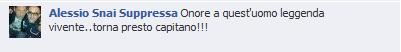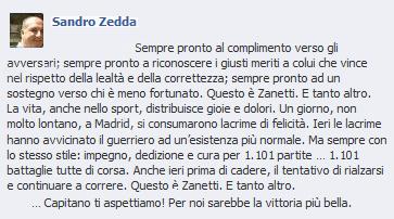 Dopo quello che è successo ieri, era inevitabile non dedicare almeno un pensiero al nostro Capitano: dopo 1101 battaglie vissute da protagonista, Javier Zanetti è stato costretto a fermarsi ai box; “giusto il tempo di un cambio gomme” assicura lui, smentendo chi stava già ipotizzando un addio al calcio giocato. Ma Pupi non ha nessuna intenzione di arrendersi e vuole “tornare più forte di prima”: per questo, nel tentativo di ingannare l’attesa e rendere meno amaro questo periodo in cui Javier sarà costretto a sostenere la sua Inter come un semplice tifoso, abbiamo chiesto ai nostri lettori di scrivergli un messaggio. Avete risposto in tantissimi e non è stato facile selezionare i più significativi: vi ringraziamo uno per uno, certi di poter replicare l’iniziativa nel giorno del suo rientro in campo. In fondo, ci sono ancora tantissimi record che il nostro Tractor deve abbattere…