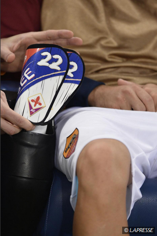 Il fantasista serbo classe 1991, durante la partita di ieri sera all’Olimpico, che ha visto i giallorossi sbarazzarsi del Bologna per 5-0, è stato pizzicato in panchina mentre mostrava i suoi parastinchi gigliati che ricordano chiaramente i suoi trascorsi viola.
