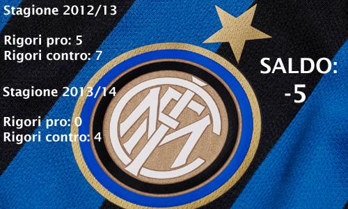 Analizzando gli errori arbitrali, si parla spesso di “sudditanza psicologica”. A giudicare da questi dati, però, l’Inter non sembra beneficiarne: a differenza delle altre big del nostro campionato (salde ai primi posti della classifica), i nerazzurri occupano infatti la penultima posizione con un saldo passivo di 5 penalty per quanto riguarda il bilancio delle ultime due stagioni.