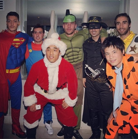 L’Arsenal ha deciso di festeggiare il Natale in maschera: da Superman Ozil a un Podolski in versione Hulk…