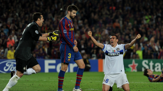 28/04/2010 – A Barcellona si compie l’impresa: Inter in finale di Champions League dopo 38 anni dall’ultima volta. Dopo il 3-1 di San Siro del 20 aprile, nel ritorno della semifinale, al Camp Nou, il 28 aprile i nerazzurri – in dieci dal 28′ del primo tempo per l’espulsione ingiusta di Thiago Motta – al 39′ della ripresa vanno sotto di un gol, siglato da Piqué, ma grazie al coraggio e alla forza del gruppo non mollano. Il loro cuore è immenso e resistono all’assalto blaugrana, realizzando il sogno di giocare la finale di Madrid;