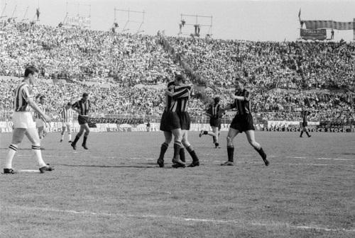 28/04/1963 – Scudetto! L’ottavo. Arriva al termine di Juventus-Inter 0-1. Il primo per il presidente Angelo Moratti e per il “Mago” Helenio Herrera;