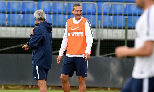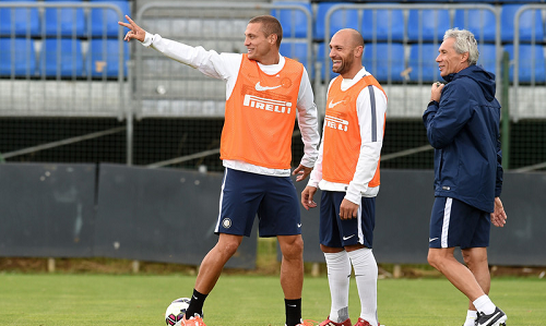 Ultima sessione di allenamento alla Pinetina per l’Inter di Mazzarri prima della partenza per il ritiro estivo di Pinzolo. Per la squadra riscaldamento tecnico, esercitazione tecnico-tattica e lavoro aerobico all’interno del Golf Club Pinetina. Il tecnico toscano ha potuto abbracciare anche il neo-acquisto Dodò, che ha raggiunto i compagni ad Appiano per visitare il centro sportivo “Angelo Moratti” e svolgere la sua prima seduta d’allenamento in maglia nerazzurra.