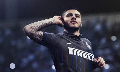 La nuova maglia home è infatti nera con sottili strisce verticali azzurre. Il nuovo logo – in una versione esclusiva con la stella – sarà presente solo sulla maglia, a sinistra del petto, all’altezza del cuore. Il colletto, piccolo e stondato, è nero e profiliato in azzurro. Su di esso è posto un bottone a chiusura e uno a scomparsa. Al suo interno è presente un’etichetta a forma triangolare con la croce di San Giorgio, simbolo della città di Milano.