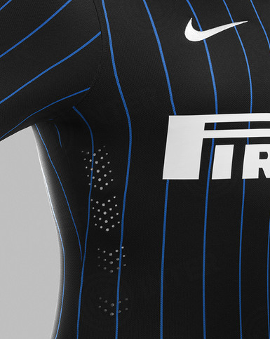Sul suo retro è presente la scritta “Inter” realizzata con il tipico font introdotto dagli stendardi e dalle bandiere dei tifosi nerazzurri negli anni ’70. I pantaloncini abbinati alla maglia home sono neri con una sottile linea azzurra sui lati mentre le calze sono nere con bordo azzurro. Il nuovo kit è realizzato con la più innovativa tecnologia Nike in grado di garantire la miglior performance agli atleti e presenta elevati standard di ecosostenibilità.
