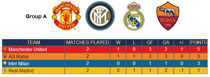 Ecco la classifica comandata dal Manchester a quota 5 punti e chiusa dal Real Madrid a un solo punto: