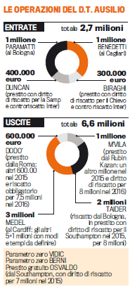 Intanto sono entrati quasi tre milioni da uscite minori, ma altri Ausilio spera di incassarne dalle cessioni. Anzitutto quella di Guarin, potenziale tesoretto da reinvestire su un giovane di prospettiva (Firmino costa 20 milioni ed è fuori budget: magari Rabiot?), anche se per 2-3 milioni più conguaglio tecnico può restare viva l’ipotesi Biabiany, con uscita di Botta. E poi Silvestre (parla con il Palermo), Kuzmanovic (Siviglia e Valencia: l’Amburgo si è defilato dopo aver preso Behrami), Schelotto (c’è il Parma: il Southampton ha subito scelto Taider fra il giocatori proposti obbligatoriamente dal d.t.) e soprattutto Campagnaro (ipotesi Genoa, Samp e anche Palermo): proprio in vista di una partenza dell’argentino è tenuta calda la pista del ritorno di Rolando.