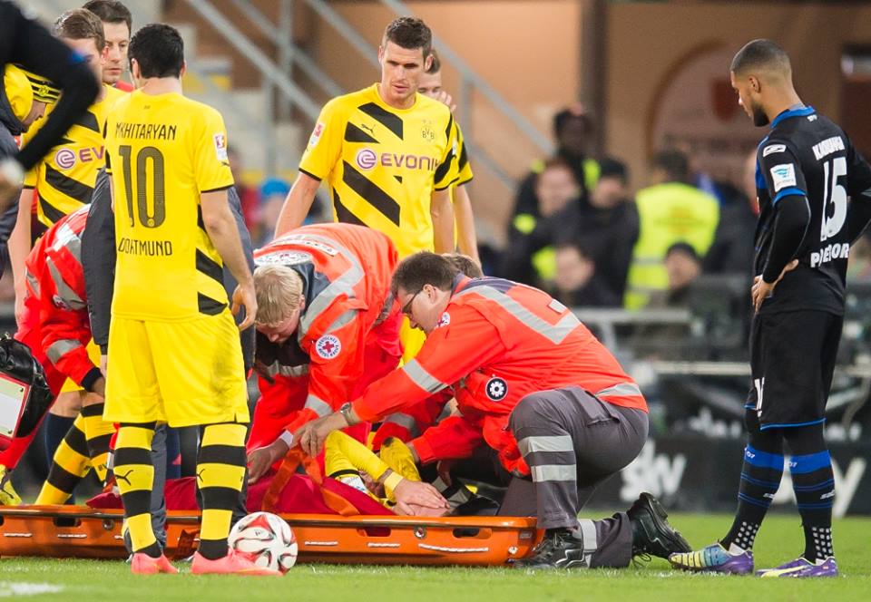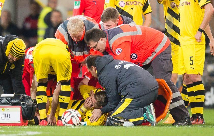 Sempre più sfortunato Marco Reus. Il tedesco, dopo aver saltato i mondiali in Brasile a causa di un infortunio alla caviglia sinistra, si è fatto male di nuovo questo pomeriggio durante Borussia Dortmund-Paterborn, a causa di un’entrata killer di Marvin Bakalorz che ha colpito in pieno la sua caviglia sinistra. Michael Zorc, dirigente del Borussia, ha detto che potrebbe trattarsi di una rottura dei legamenti: nelle prossime ore se ne saprà di più.