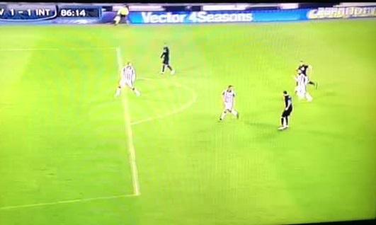Il motivo? Come si può vedere nella foto (1), l’Inter approfitta di uno svarione della Juventus per lanciarsi in contropiede. Il pallone è sui piedi di Icardi che prosegue a testa bassa, negando il passaggio al compagno meglio piazzato il quale, non servito, va in escandescenze. Provvidenziale l’intervento di Guarin che si frappone tra i due.