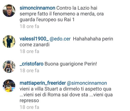 FOTO – Perin scatenato sui social, ecco come risponde a quelli che lo attaccano