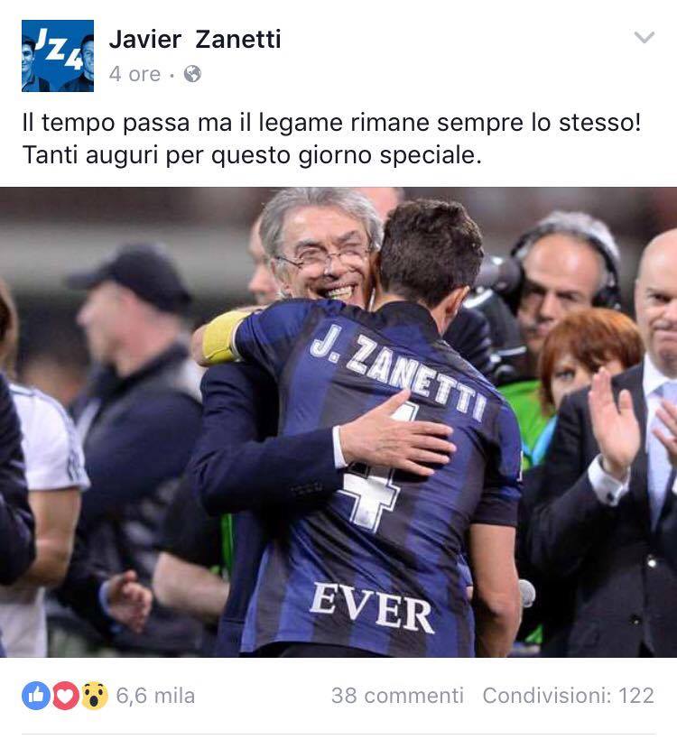 Sui social sono arrivati auguri speciali per lui, precisamente da Zanetti (sul suo account Facebook), ma anche da Icardi, da Juan Jesus e dalla stessa Inter (tramite i propri account Instagram).