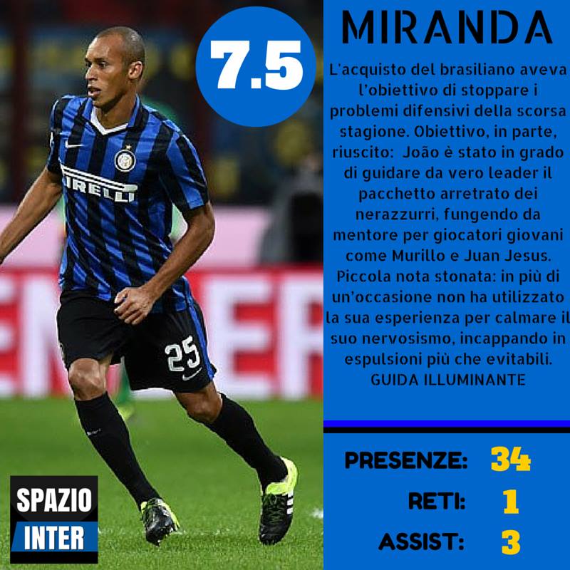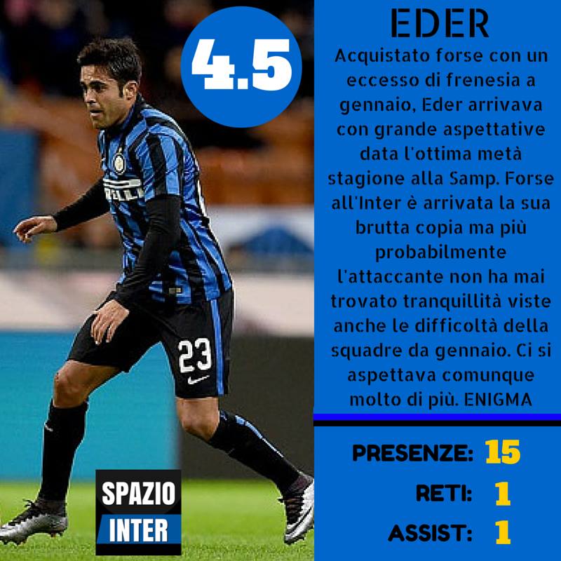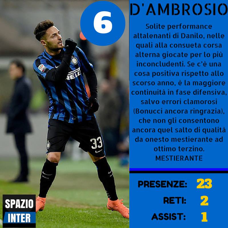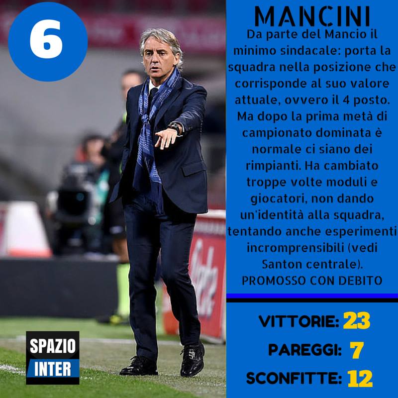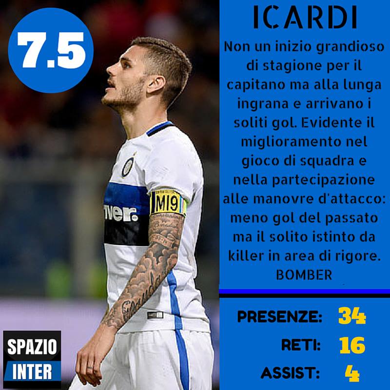 Nel reparto arretrato un miglioramento si è notato sia in Handanovic che nei due centrali (che rispetto allo scorso anno sono cambiati), nonostante vi sia stato qualche svarione ogni tanto. Tanta delusione per quanto riguarda i terzini; il centrocampo sufficiente, in attacco si salvano in pochi (spicca Icardi).
