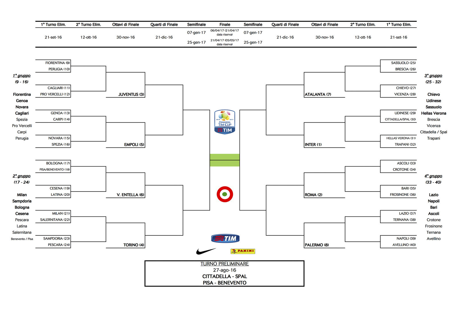 Come comunicato sul sito ufficiale dell’Inter, è stato sorteggiato il tabellone della prossima Coppa Italia Primavera, la cui detentrice del titolo è proprio l’Inter, grazie alla grande vittoria nel doppio confronto contro la Juventus di Grosso. L’Inter di Stefano Vecchi è stata ovviamente designata con la prima testa di serie ed entrerà in gioco solo dagli ottavi di finale. Di seguito ecco il tabellone: