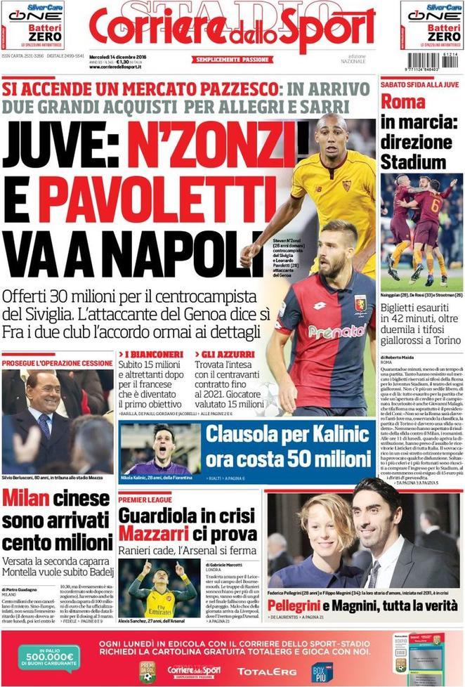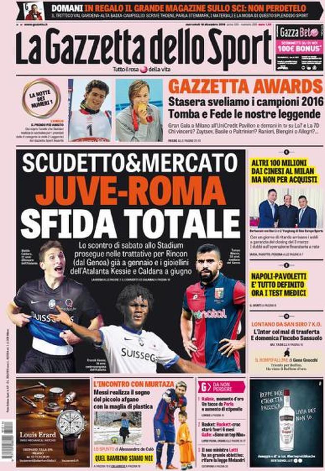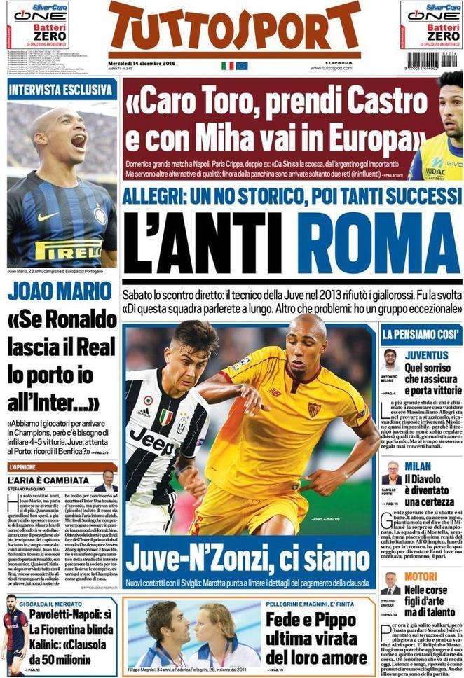 Torna la rassegna stampa e le prime pagine dei quotidiani sull’Inter. La Gazzetta dello Sport analizza la prossima sfida dell’Inter. I nerazzurri affronteranno il Sassuolo nel prossimo incontro di campionato. I nerazzurri, però, devono sfatare il tabù trasferta. Lontano da San Siro, infatti, sono state ben sette le sconfitte per gli uomini di Pioli. Tuttosport, invece, riporta le parole di Joao Mario, che si è lasciato scappare una battuta su Ronaldo. Se il neo Pallone D’Oro dovesse andare via dal Real, il centrocampista farebbe di tutto per portarlo in nerazzurro. Spazio poi alla rimonta in campionato: secondo il numero 6 i giocatori per arrivare in Champions ci sono, ma servono 4-5 vittorie di fila per potersi rilanciare. Nessun accenno ai nerazzurri, invece, nella prima pagina del Corriere dello Sport, che lancia una doppia indiscrezione di mercato: N’Zonzi alla Juve e Pavoletti al Napoli.