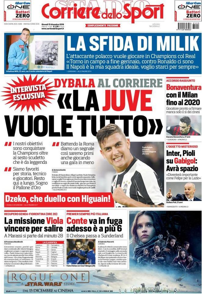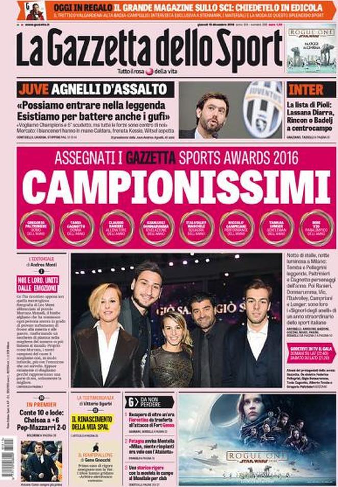 Il Corriere dello Sport invece in prima pagina predilige parlare di campo e delle scelte del mister sull’affaire Gabigol: “Inter, Pioli su Gabigol: avrà spazio. Diventerà importante come Felipe per la Lazio”. Una bella iniezione di fiducia per il ragazzo tanto discusso.