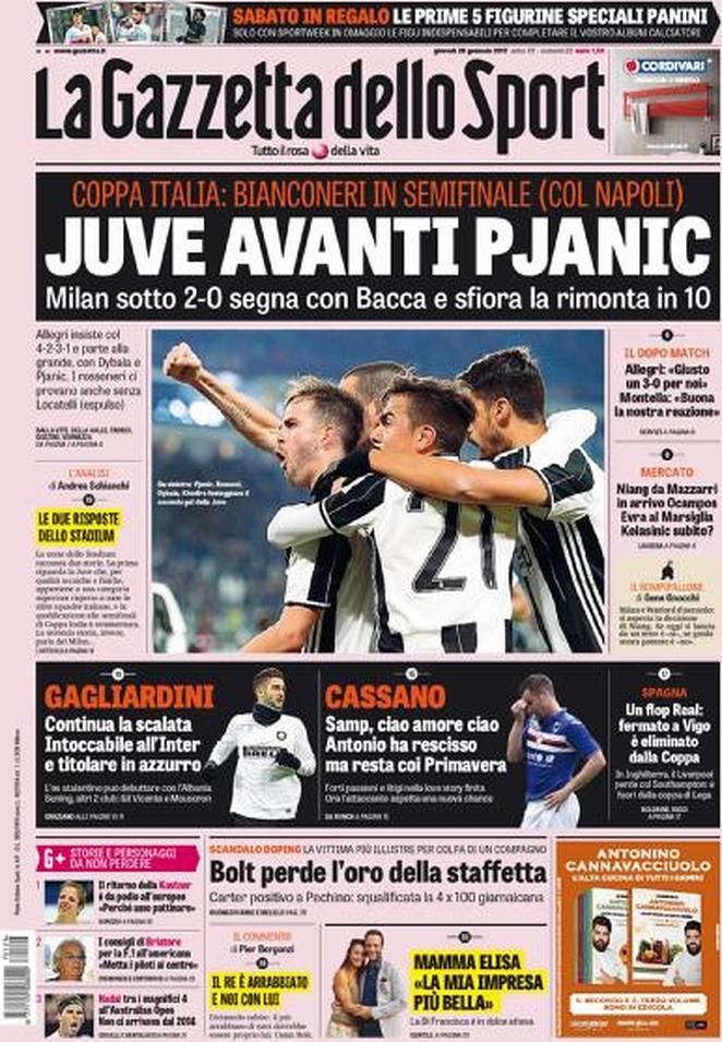 Nessuna traccia di Inter invece sul Corriere dello Sport, che si sofferma in particolar modo sul successo della Juventus in Coppa Italia contro il Milan.