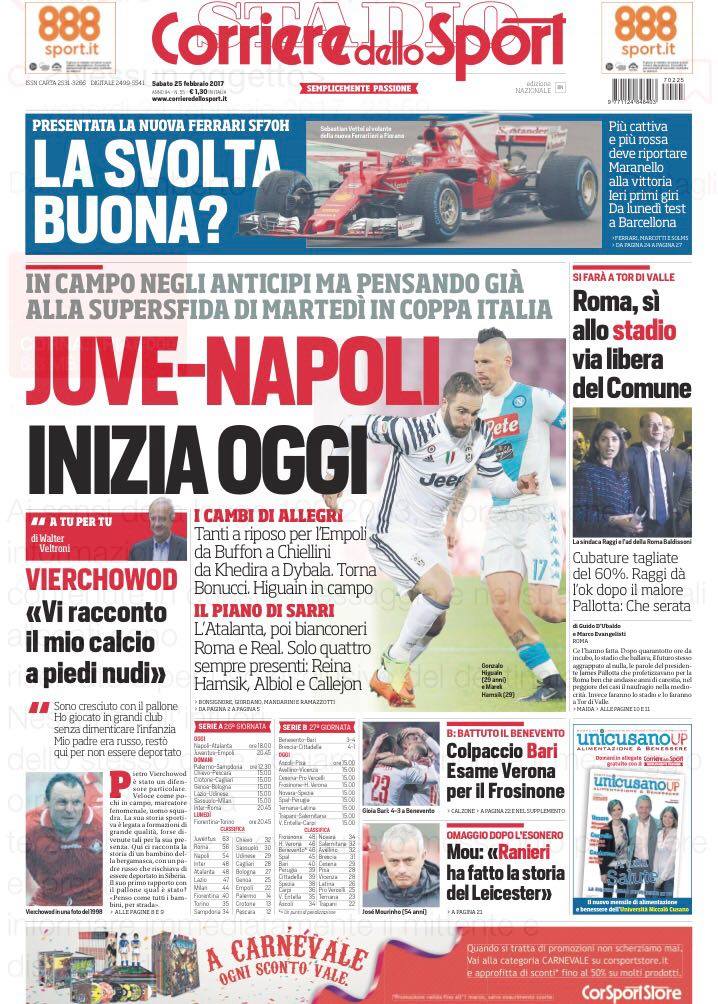 Nessun riferimento all’Inter nel numero del Corriere dello Sport, si parla di Ferrari: “Sarà la svolta nuova” e del duello Juve-Napoli che in settimana vedrà la prima sfida di Coppa Italia.