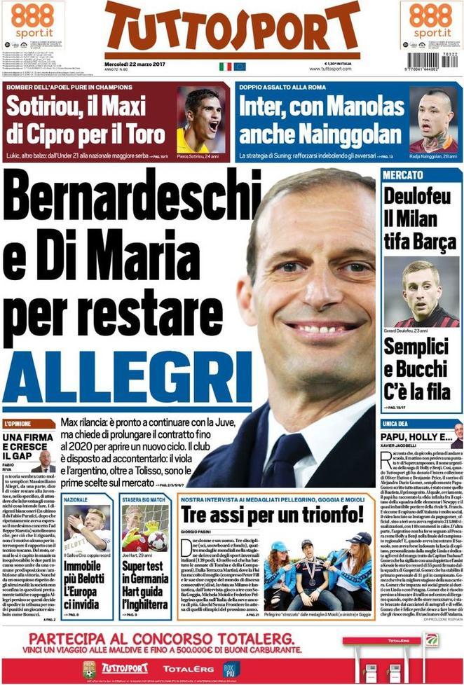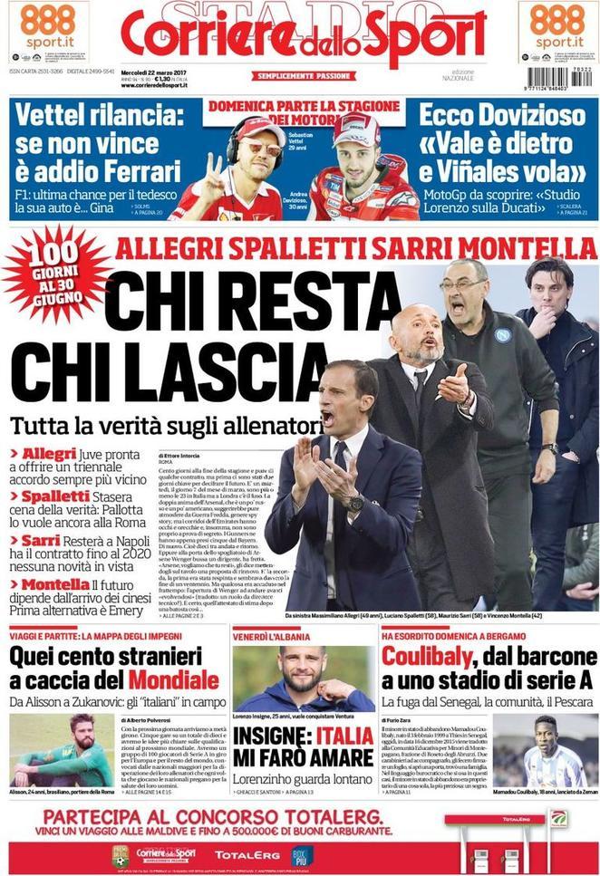 Le prime pagine dei quotidiani sportivi riportano indiscrezioni di mercato riguardanti l’Inter. I nerazzurri, oltre all’ormai dichiarato obiettivo Kostas Manolas, starebbero pensando anche di soffiare Radja Nainggolan alla Roma, stando a quanto dice Tuttosport Il belga, già vicino all’Inter dai tempi del Cagliari, è un obiettivo concreto dei nerazzurri, ma strapparlo ai giallorossi non sarà facile. Nessuna citazione ai nerazzurri, invece, nella prima pagina del Corriere dello Sport.
