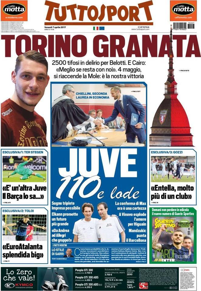 TuttoSport si concentra sulla laurea di Chielllini e su Belotti, stella della squadra granata. Il Corriere dello Sport invece scrive di Berardi e dell’accordo che già avrebbe preso con l’Inter.
