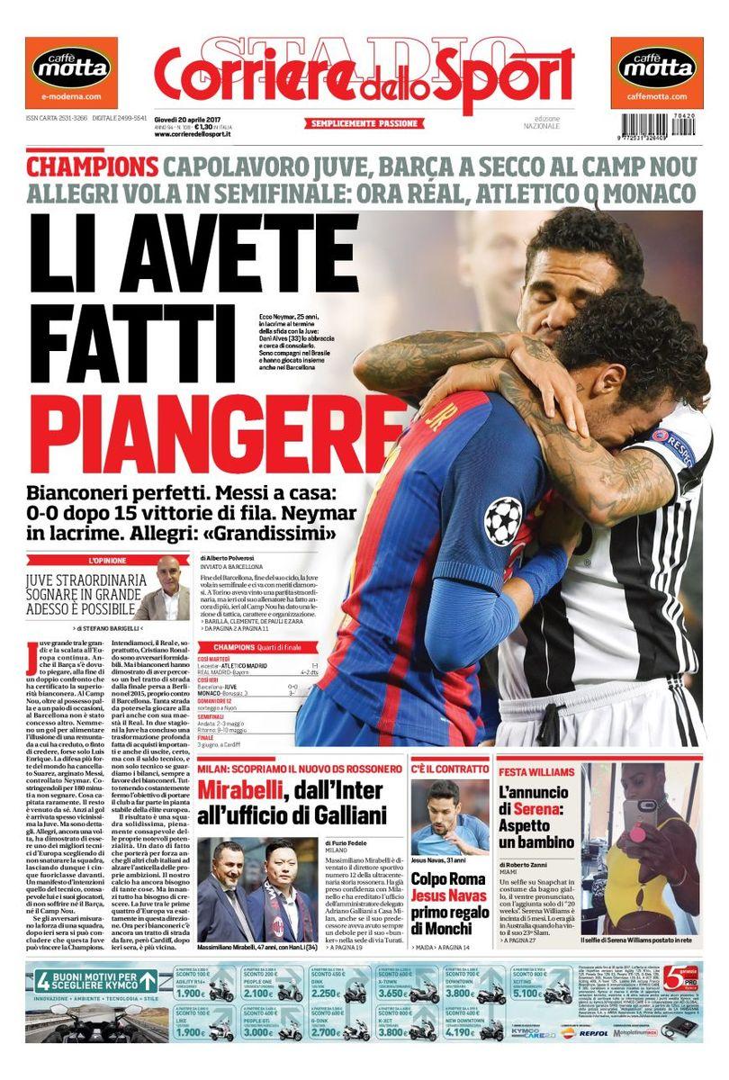 Ampio spazio alla serata di Champions sui quotidiani sportivi. Nessun riferimento all’Inter su Tuttosport. Il Corriere dello Sport dedica uno spazio in prima pagina a Mirabelli nuovo ds del Milan e ex Inter: “Mirabelli dall’Inter all’ufficio di Galliani”
