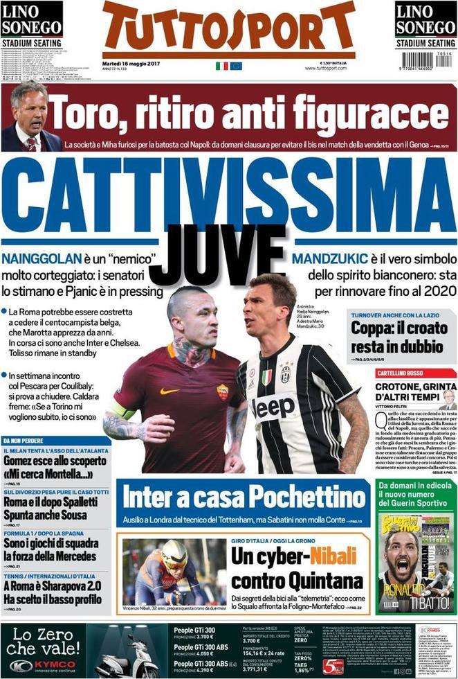 TuttoSport apre parlando di Juventus attiva sul mercato e con Nainggolan nel mirino. Spazio anche all’Inter, alla ricerca di un allenatore e interessata a Pochettino.