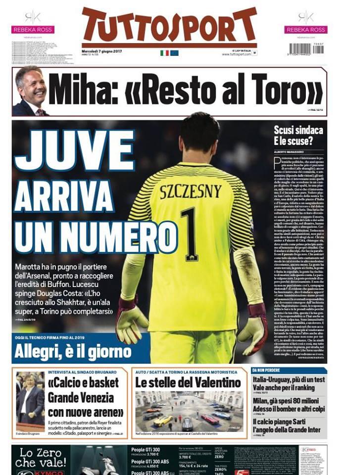 Il Corriere dello Sport si concentra su Ventura e sulla panchina del Jiangsu Suning rifiutata. Il CT della nazionale italiana ha idea di rimanere sulla panchina azzurra fino agli Europei del 2020. Spazio poi al cordoglio per la scomparsa di Giuliano Sarti, portiere della Grande Inter. Anche TuttoSport ricorda l’estremo difensore dell’Inter di Herrera.