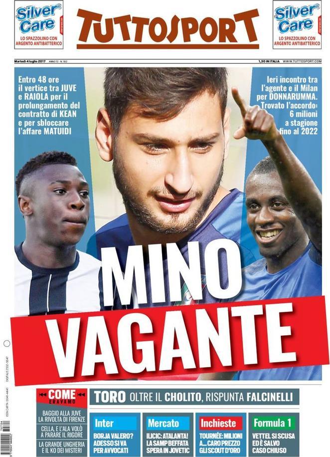 TuttoSport apre parlando di Mino Raiola, al centro del mercato per i rinnovi di Donnarumma e Kean. Spazio anche al caso Borja – Fiorentina, ormai in guerra totale.