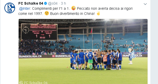 Inter e Schalke hanno pareggiato l’amichevole di Changzhou. Ma la sfida e continuata nel post partita su Twitter.