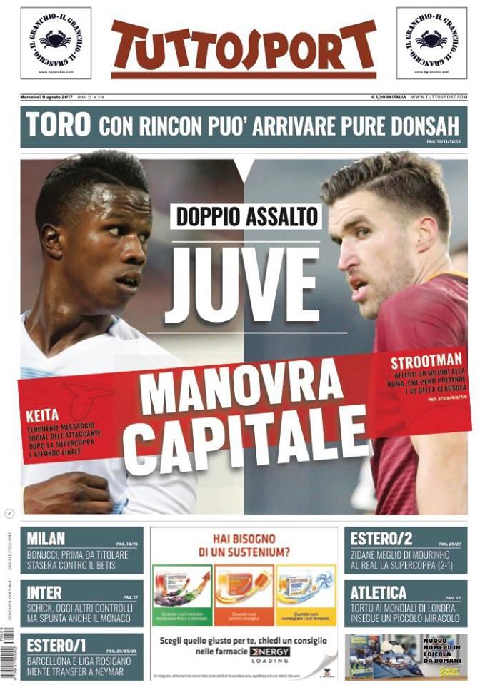Le prime pagine dei principali quotidiani sportivi italiani nella rassegna stampa di Spaziointer