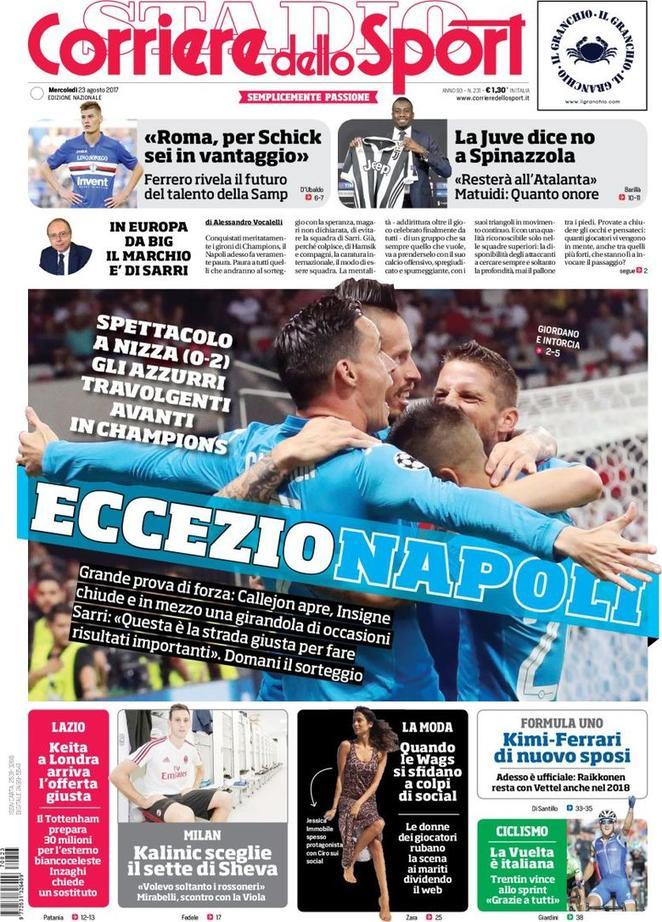 La rassegna stampa odierna si sofferma sulla grande prestazione partenopea in Champions. D’altro canto per Schick c’è la Roma in vantaggio.