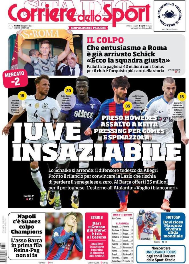 Il Corriere dello Sport apre parlando della Juve, scatenata sul mercato. Spazio anche al colpo giallorosso, Schick.