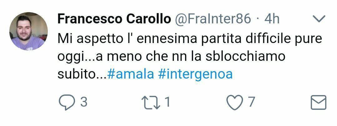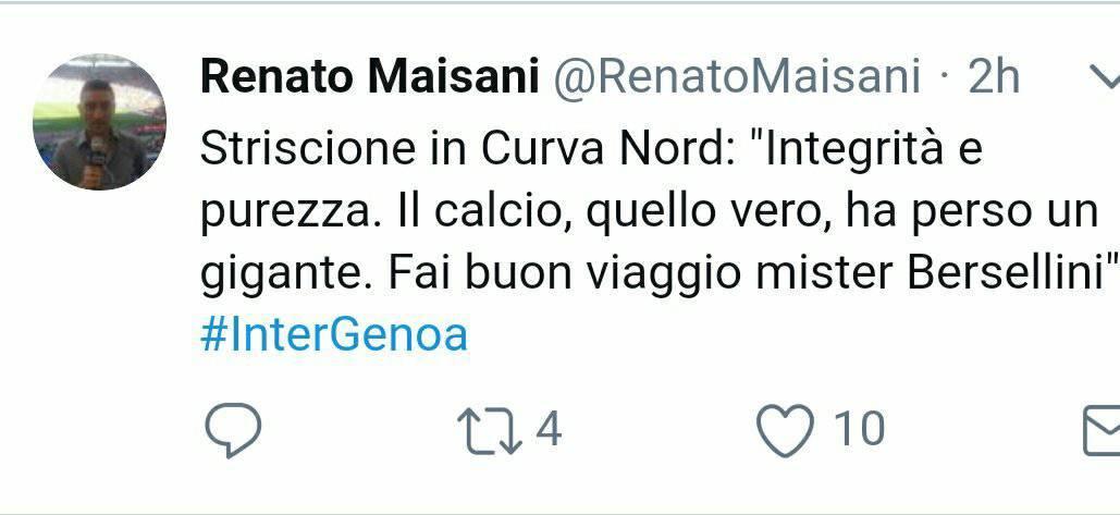 Nell’attesa del fischio di inizio tra Inter e Genoa, mentre sugli spalti si mandano i saluti e gli omaggi al defunto mister Bersellini (tecnico che portò all’inter uno scudetto e due coppe Italia) ecco come i tifosi hanno vissuto i minuti iniziali sul web: