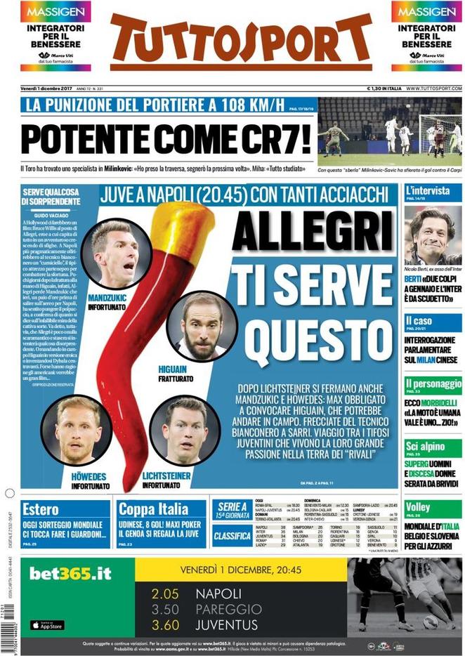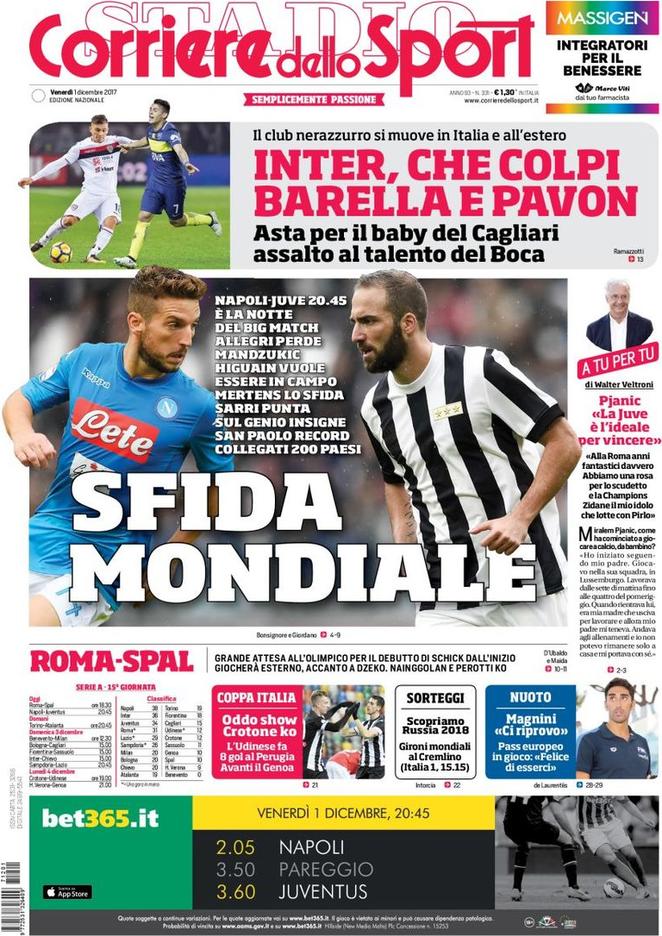 Rieccoci con il consueto appuntamento di rassegna stampa firmato SpazioInter. Iniziamo con Tuttosport: il quotidiano torinese presenta in prima pagina l’intervista a Nicola Berti. Lo storico ex nerazzurro parla dell’Inter attuale e rivela che, in caso di due colpi di mercato a gennaio, la squadra di Spalletti sarebbe da scudetto. Il Corriere dello Sport inquadra invece il mercato dei nerazzurri. Nel mirino c’è Barella del Cagliari, mentre Ausilio e Sabatini puntano anche Pavon del Boca Juniors.