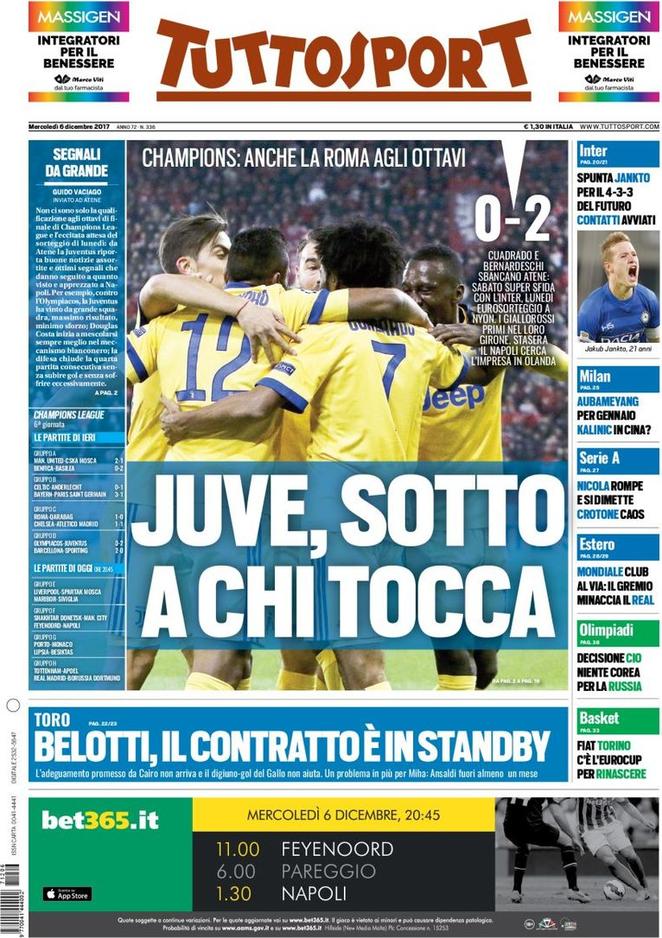 La prima pagina di Tuttosport propone una notizia di mercato riguardante l’Inter: i nerazzurri, infatti, sarebbero su Jakub Jankto. Il centrocampista, la scorsa sessione vicino al Milan, ha segnato due gol a Crotone, ed è un classe 96. Utile nel progetto di ringiovanimento, può essere utilizzato nel 4-3-3 da Luciano Spalletti. La spara ancora più grossa, invece, il Corriere dello Sport. L’idea è quella di uno scambio con Mourinho che, per fortuna, non prevede Ivan Perisic. I nerazzurri vorrebbero Mata, offrendo Joao Mario ai Red Devils. Lo Special One sarebbe d’accordo con lo scambio, ma solo se la pedina offerta dagli inglesi è Mkhitaryan.