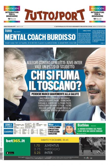 Tempo di giornali della vigilia della partitissima tra Juventus e Inter. Ovviamente occhi puntati sul derby d’Italia e su una rivalità che ha segnato sempre le due squadre e l’intero calcio italiano.