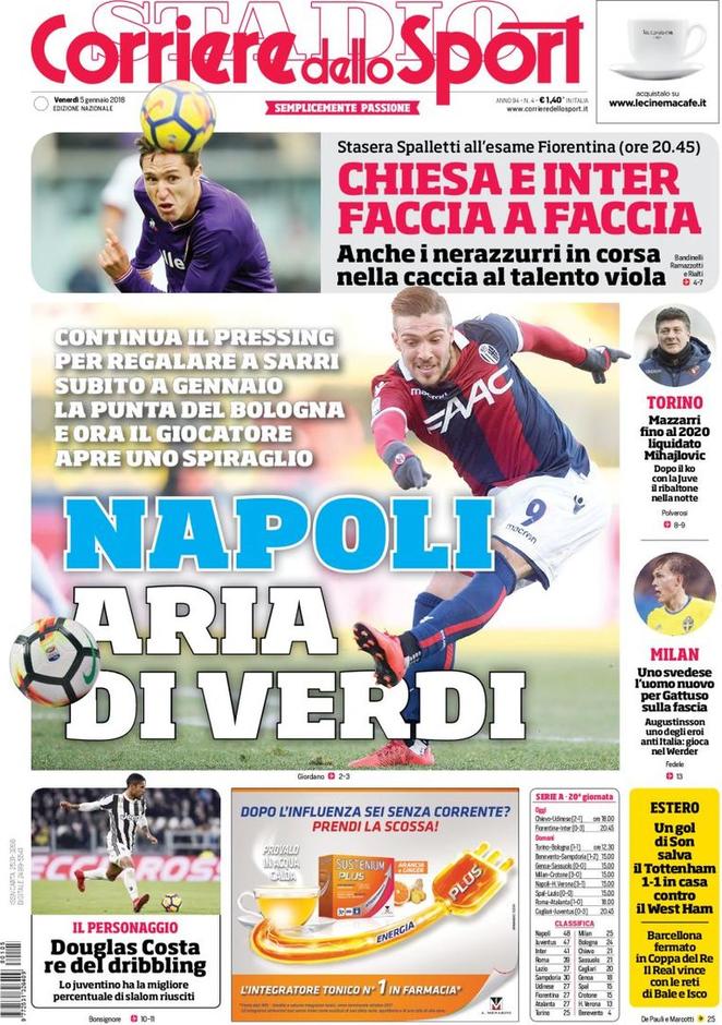 La prima pagina di Tuttosport menziona l’Inter a proposito di mercato. I nerazzurri, infatti, dovranno prima affrontare la Fiorentina al Franchi, nel tentativo di ripartire dopo un mese senza vittorie. Dopodiché, si cercherà l’assalto a Gerard Deulofeu. L’esterno del Barcellona, ex Milan, è l’obiettivo per rilanciare un attacco povero, con solo un gol in 4 partite. Il Corriere dello Sport, invece, si concentra su un altro obiettivo dell’Inter, che scenderà in campo proprio contro la squadra nerazzurra al Franchi: è Federico Chiesa. Il talento della Fiorentina è ancora nei pensieri dei nerazzurri, e lui cercherà di fare bella figura per convincere Spalletti a puntare forte su di lui. Dall’altra parte, naturalmente, Sabatini e Ausilio lo osserveranno con molta attenzione.