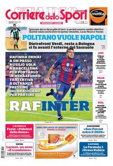 Il Corriere dello Sport apre con “Rafinter”, chiaro riferimento alla trattativa in atto tra Barcellona e Inter per portare Rafinha in nerazzurro. In alto: “Politano vuole Napoli”. A lato: “Juve, Eriksen e Ozil le strade parallele di Marotta”, “Milan, Mirabelli cerca il vice Kessié: in pole c’è Demirbay”, “Real, Ronaldo punta i piedi: vuole un ingaggio più alto”. In fondo: “Lucioni: ‘Un anno è scandaloso’.