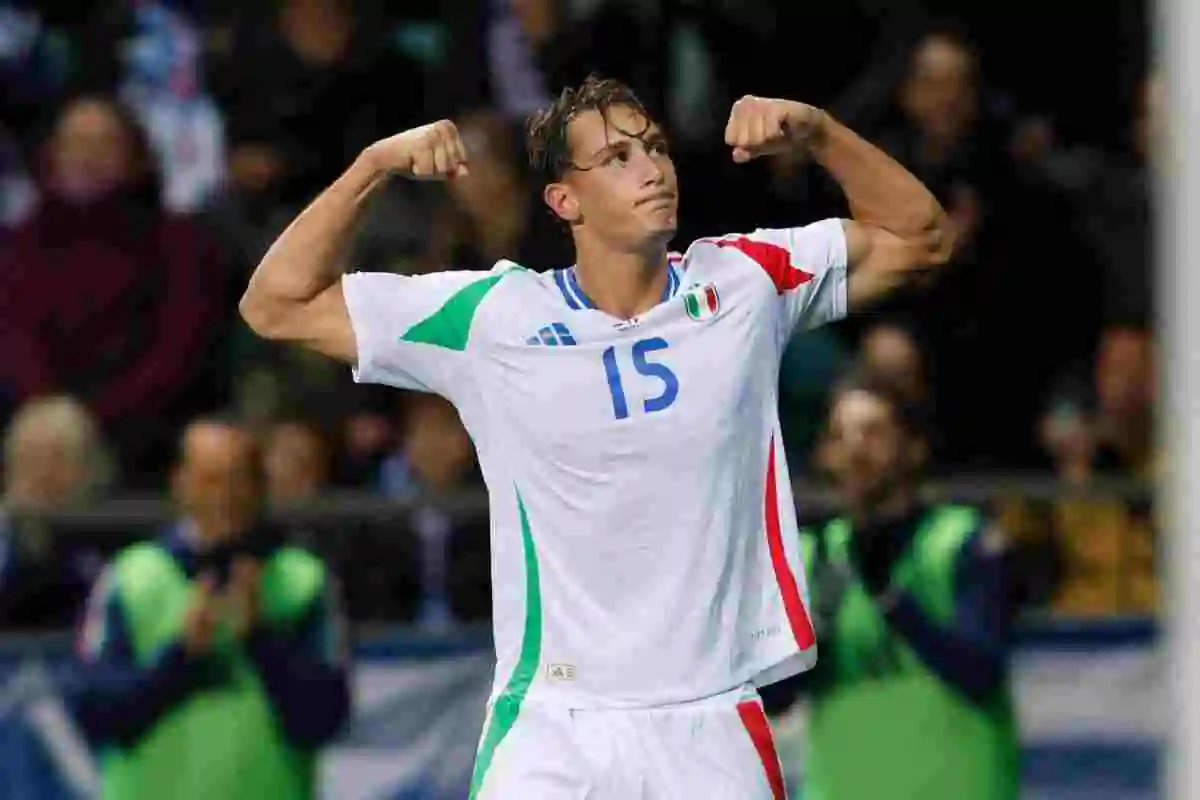 Esposito celebra la rete con l’Italia, confermando la sua crescita anche in azzurro.