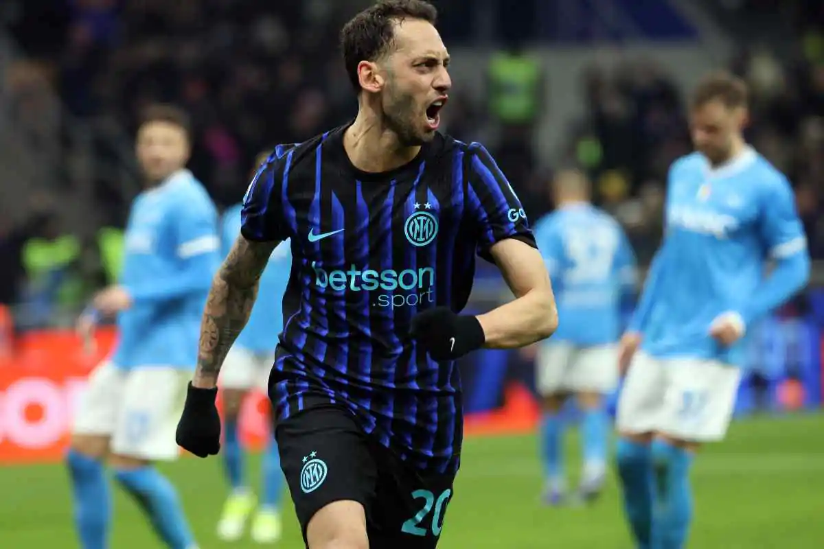 Calhanoglu esulta dopo il rigore segnato in Inter-Napoli